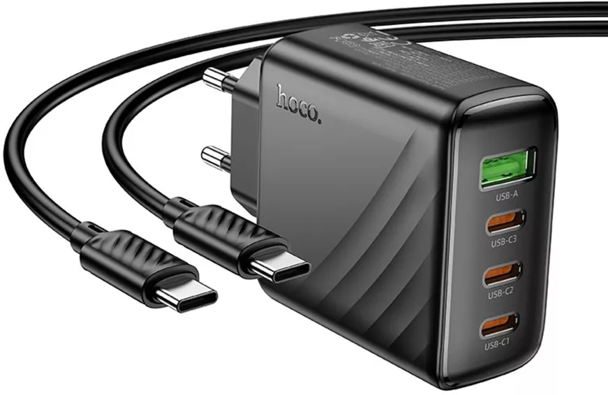 Hoco CS27A 67w GaN PD/QC 3xUSB-C/USB-A ports fast charger + USB-C to USB-C Cable Black