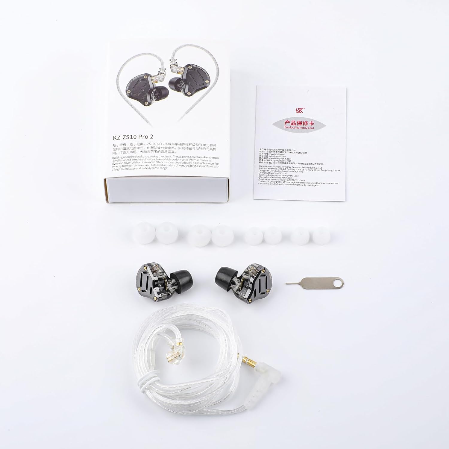 Crafted for audiophiles, the KZ ZS10 Pro 2 In Ear Headphones – Black is a 10-driver hybrid IEM with dynamic and balanced armature drivers, surpassing HiFi standards. It offers precise sound tuning, exceptional clarity, and a wide frequency range. With its industry-leading balanced armature drivers, integrated dynamic driver, and innovative crossover circuit, it delivers rich detail and a wide soundstage.